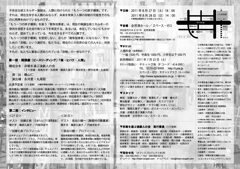 口座名:非戦を選ぶ演劇人の会(ヒセンオエラブエンゲキジンノカイ)